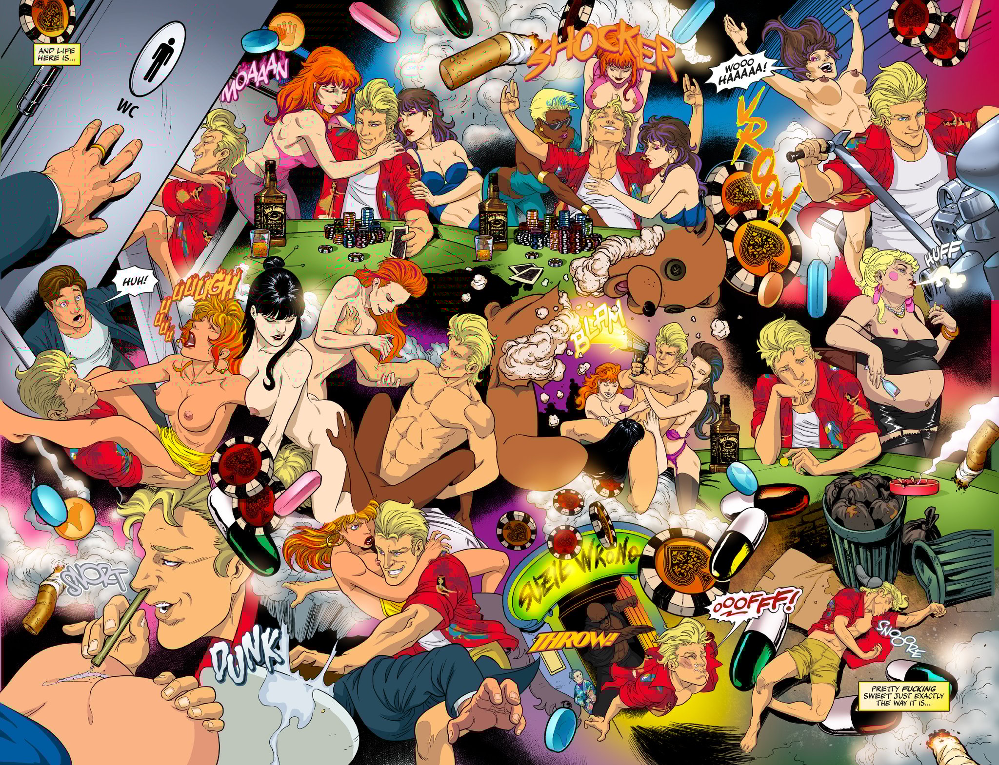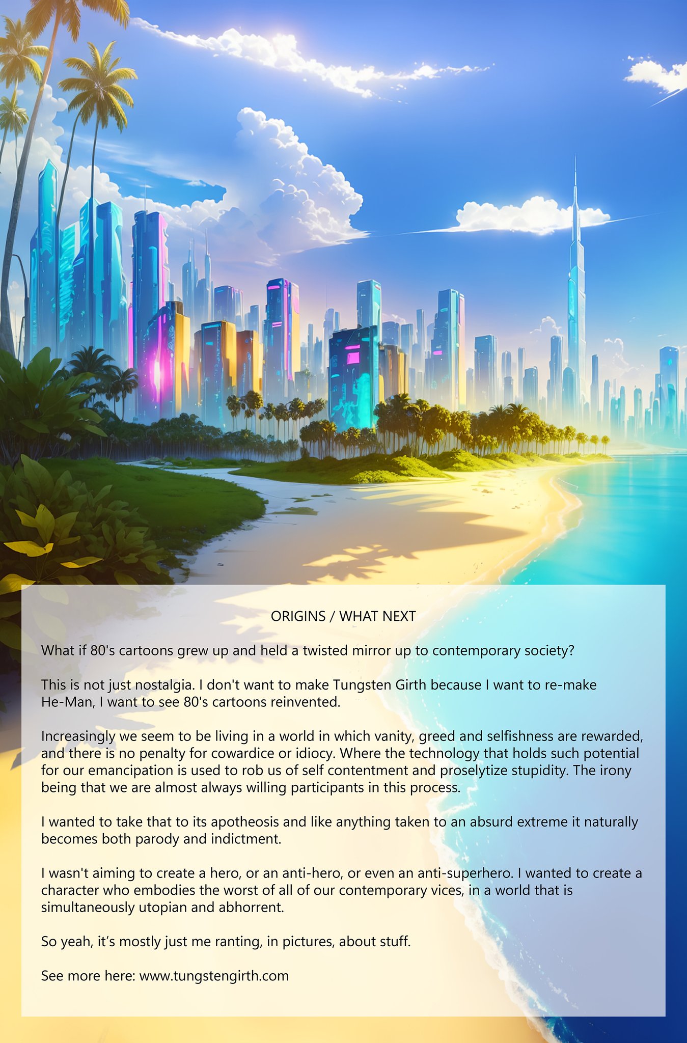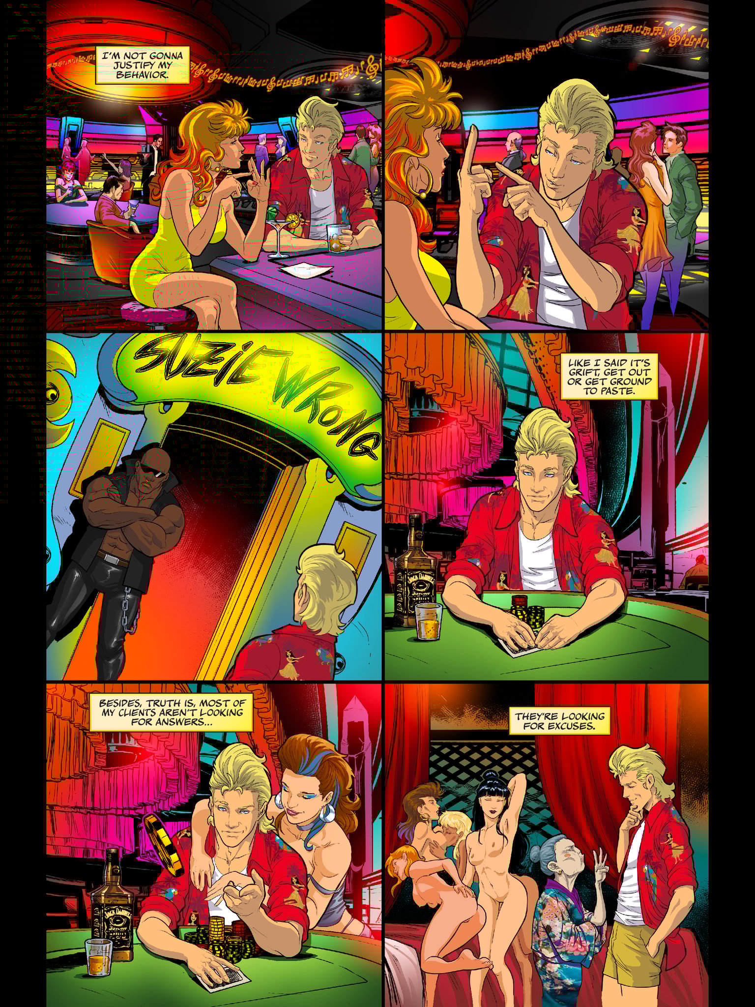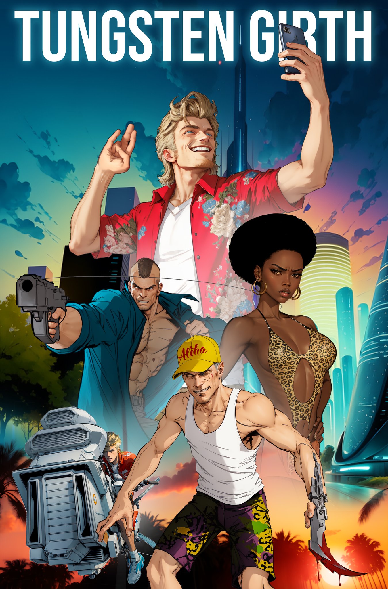 The year is four million eight hundred thousand and who gives a shit. Humanity has colonized over 4000 planets, discovered over 600 new genders and has a trillion new things to be offended about. In New Hawaii, a pleasure planet like the 80’s with a raging erection, Tungsten Girth is the only man standing between himself and everything he wants. His stupidity, greed and lack of moral compass are about to land him a case where his talent for detection and unflinching cowardice are the only things that can save him from a painful death. But when it comes to fucking himself up his own butthole he’s about to discover he’s a 24 karat pro.