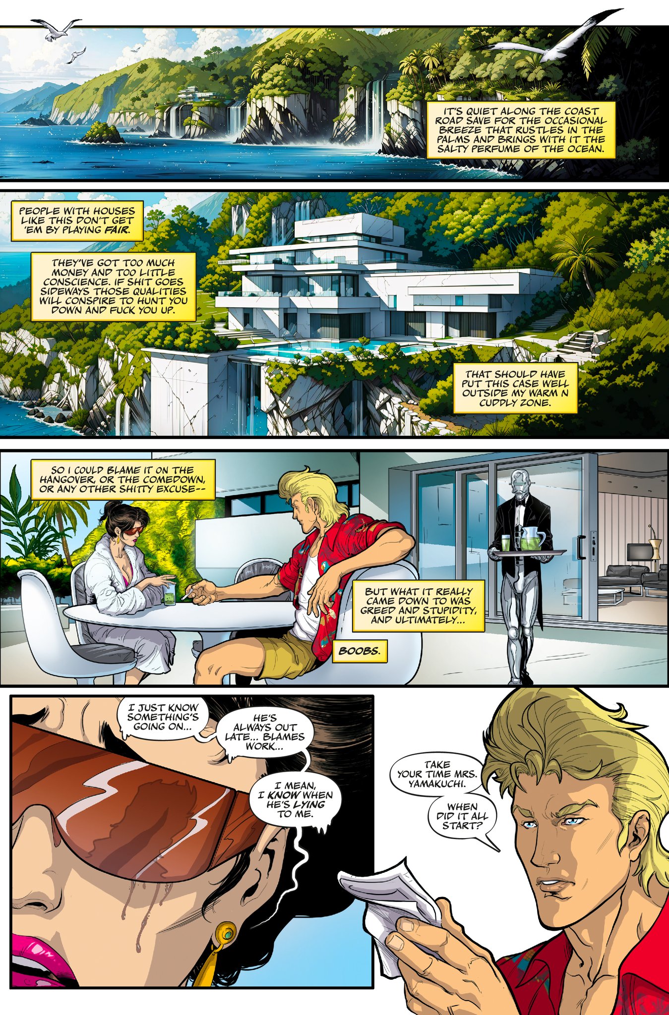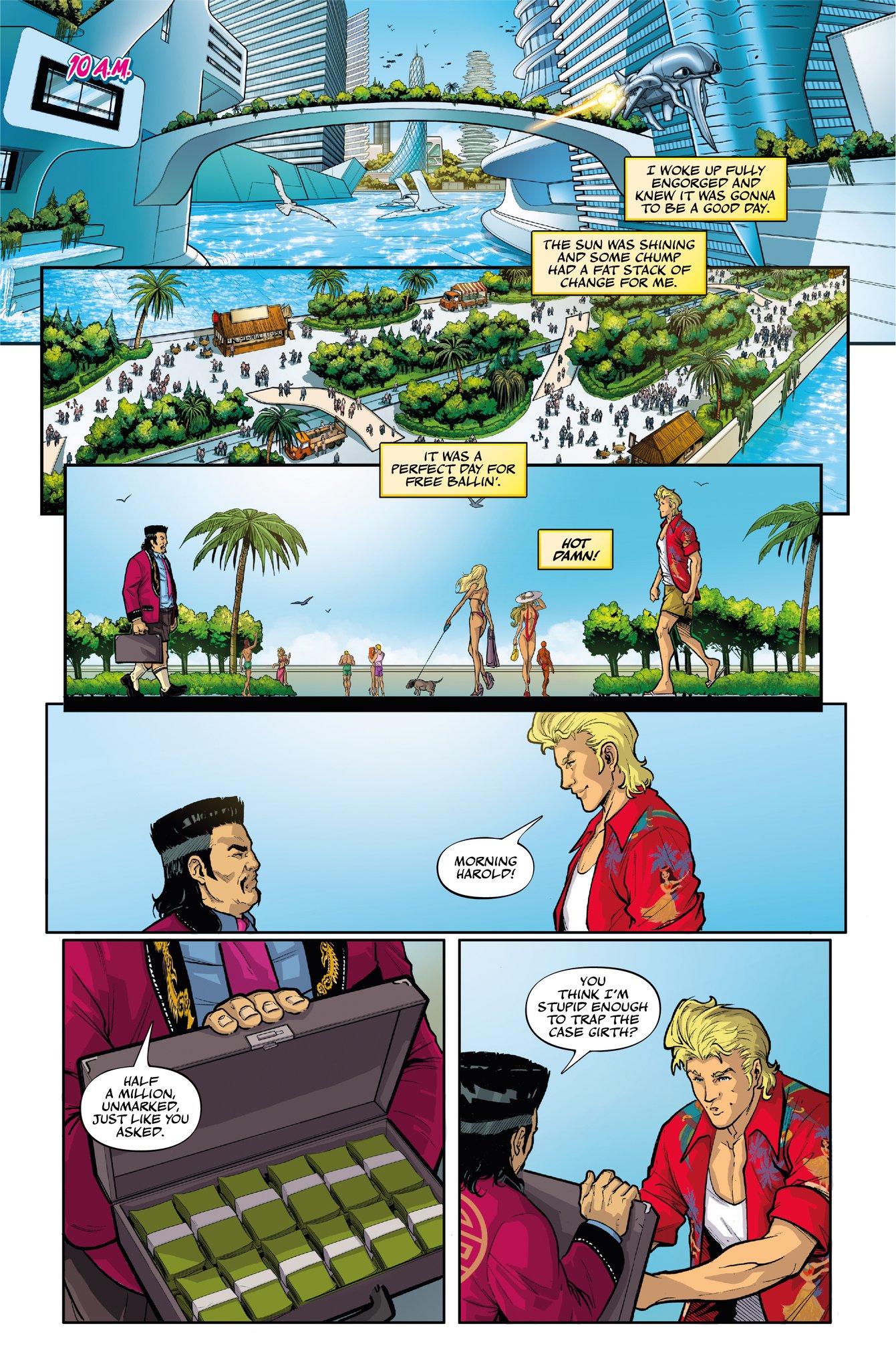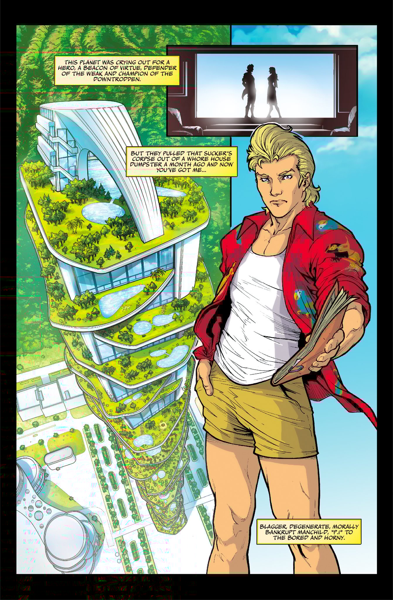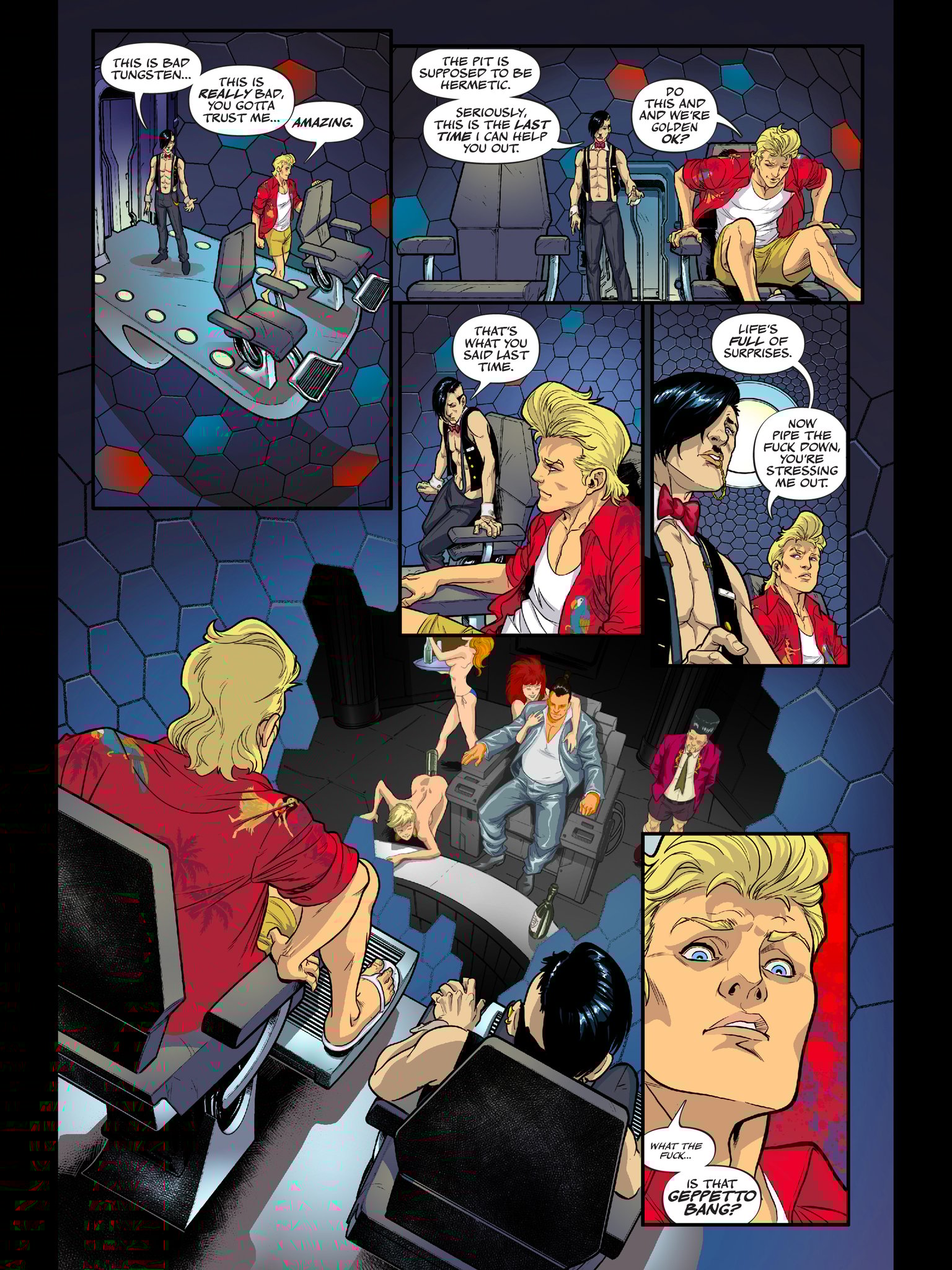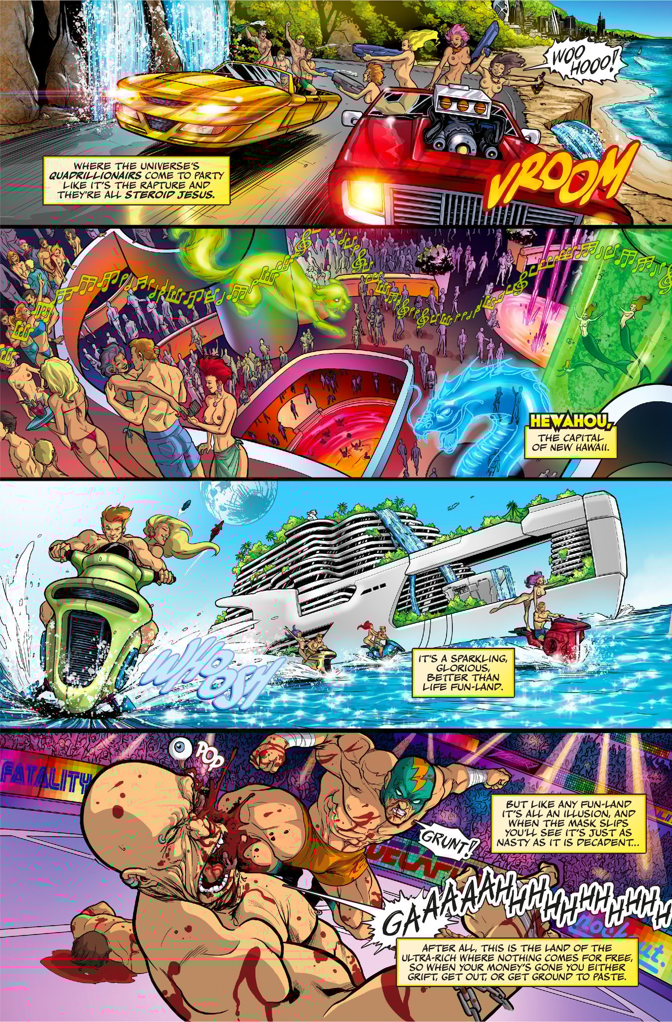 The year is four million eight hundred thousand and who gives a shit. Humanity has colonized over 4000 planets, discovered over 600 new genders and has a trillion new things to be offended about. In New Hawaii, a pleasure planet like the 80’s with a raging erection, Tungsten Girth is the only man standing between himself and everything he wants. His stupidity, greed and lack of moral compass are about to land him a case where his talent for detection and unflinching cowardice are the only things that can save him from a painful death. But when it comes to fucking himself up his own butthole he’s about to discover he’s a 24 karat pro.